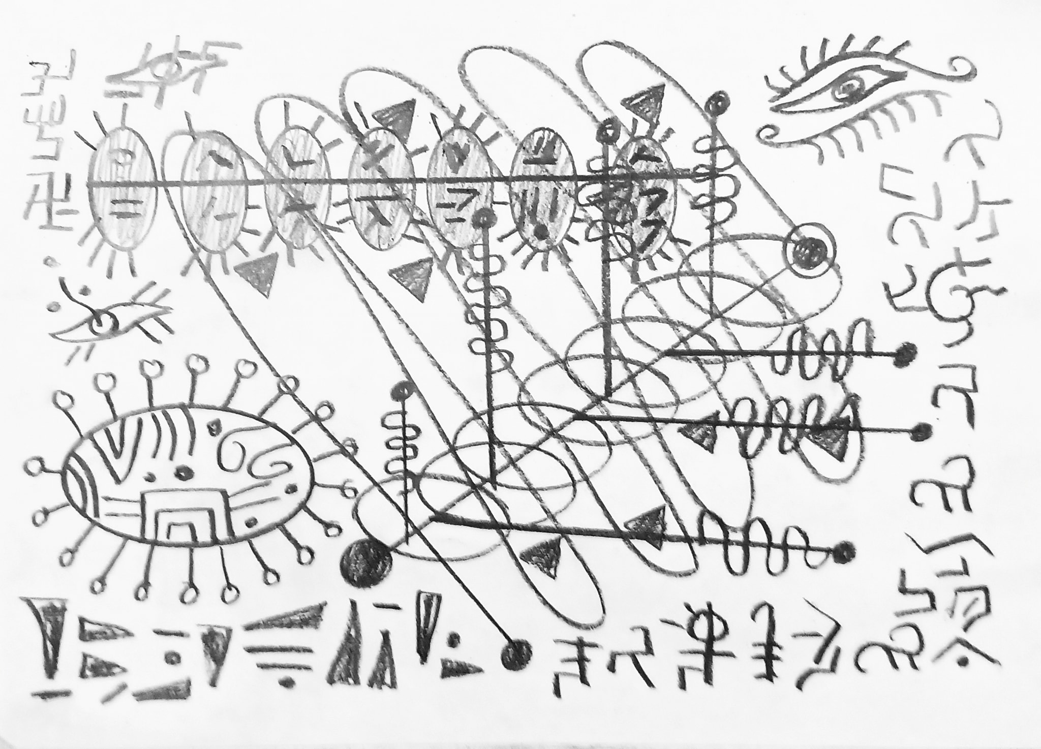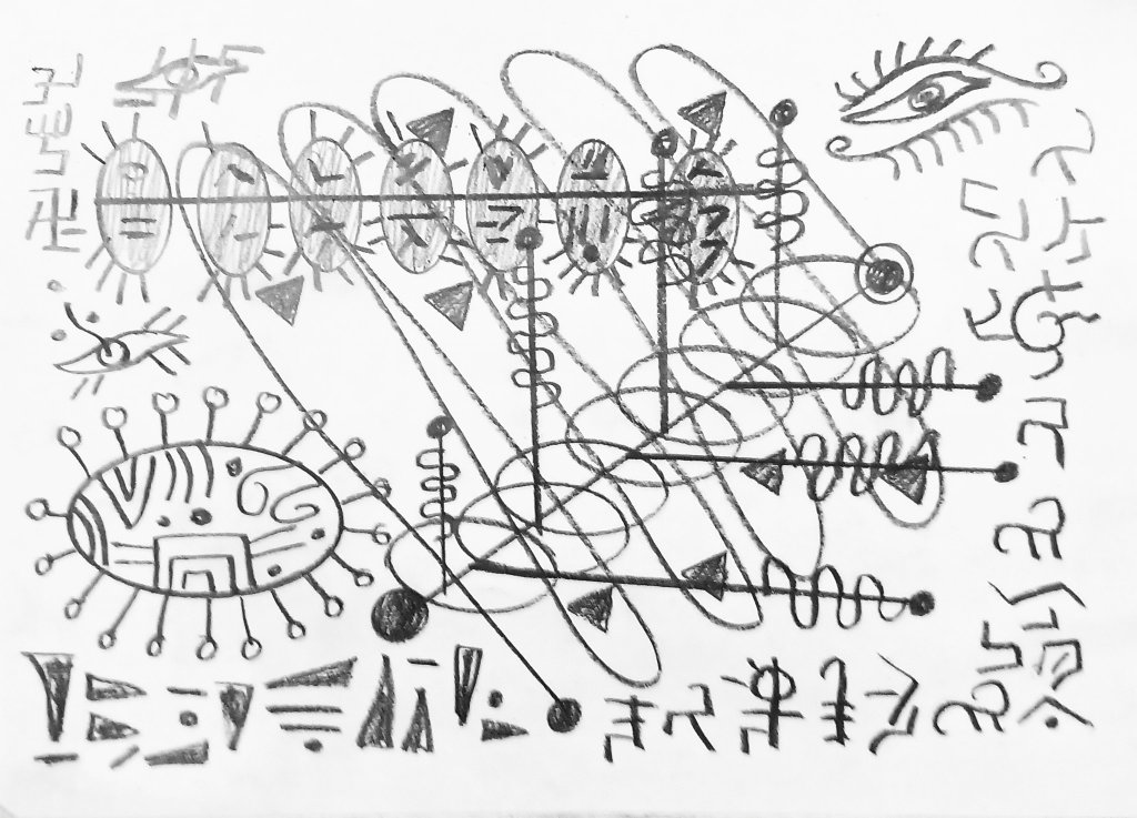 Below you will find pictographs by Gabriel Medina (Big bang quasares andromeda dimencional)