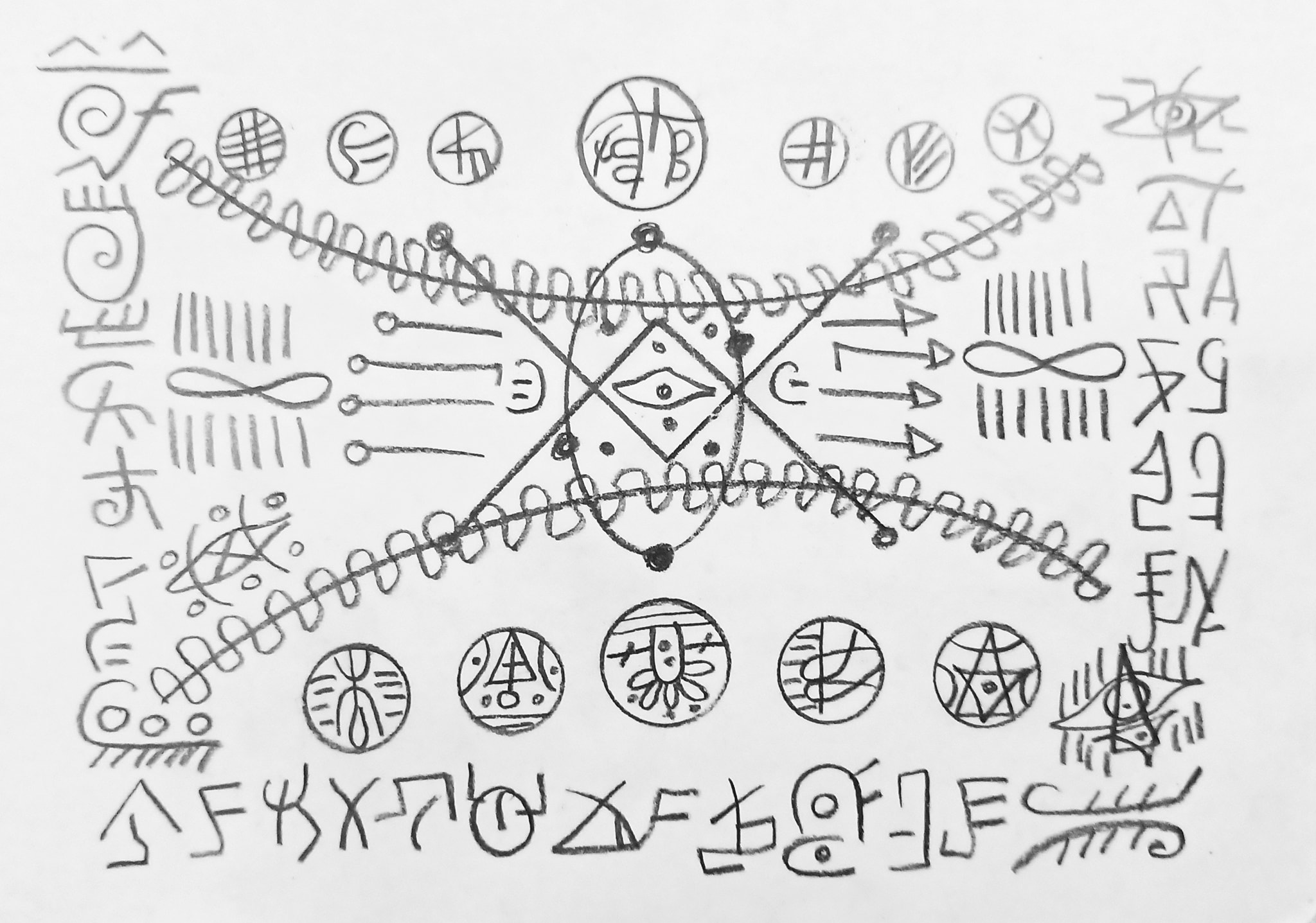 Below you will find pictographs by Gabriel Medina (Big bang quasares andromeda dimencional)