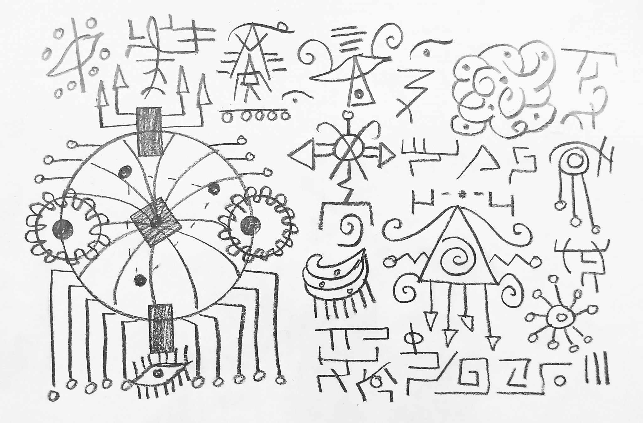 Below you will find pictographs by Gabriel Medina (Big bang quasares andromeda dimencional)
