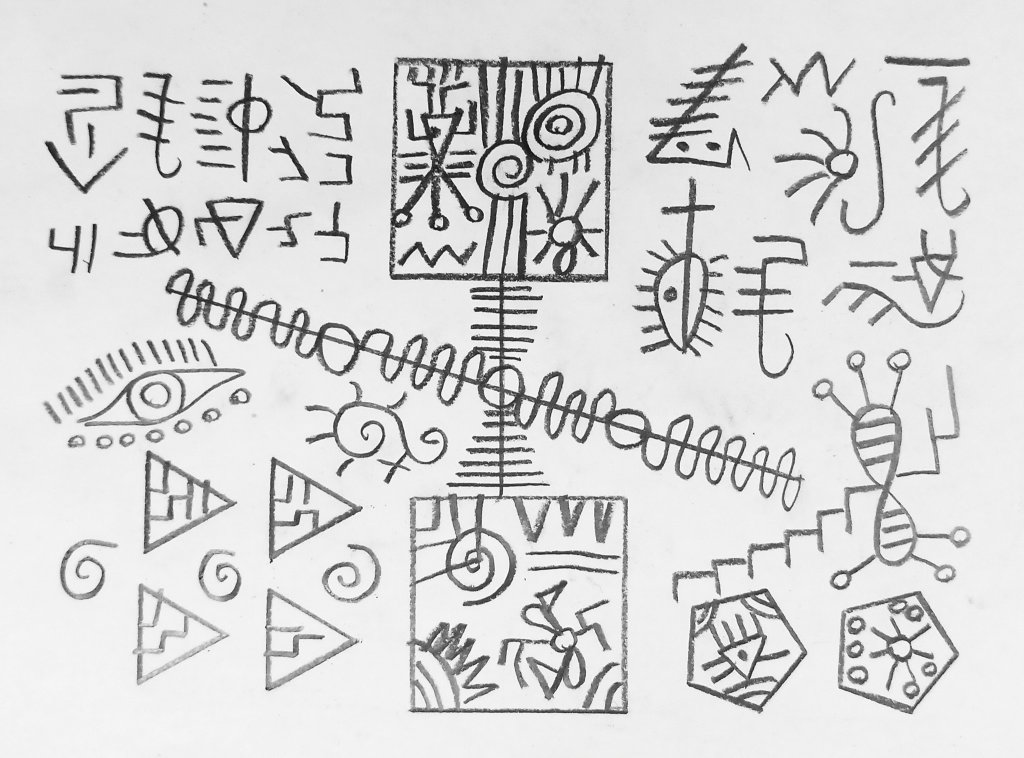 Below you will find pictographs by Gabriel Medina (Big bang quasares andromeda dimencional)
