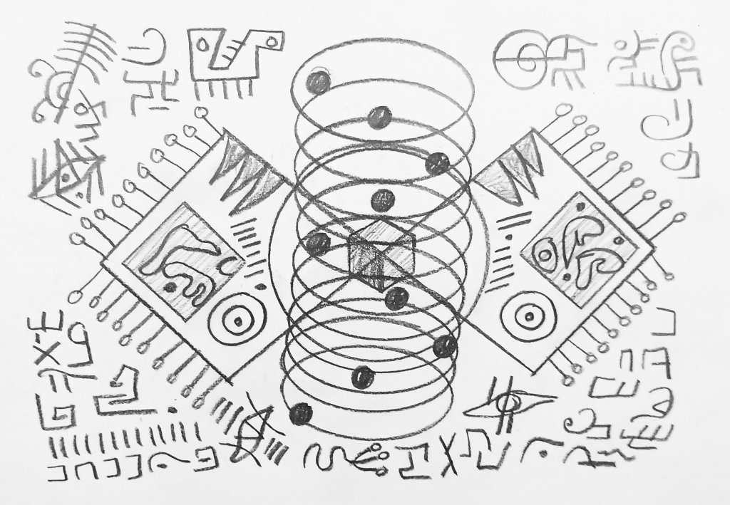 Below you will find pictographs by Gabriel Medina (Big bang quasares andromeda dimencional)