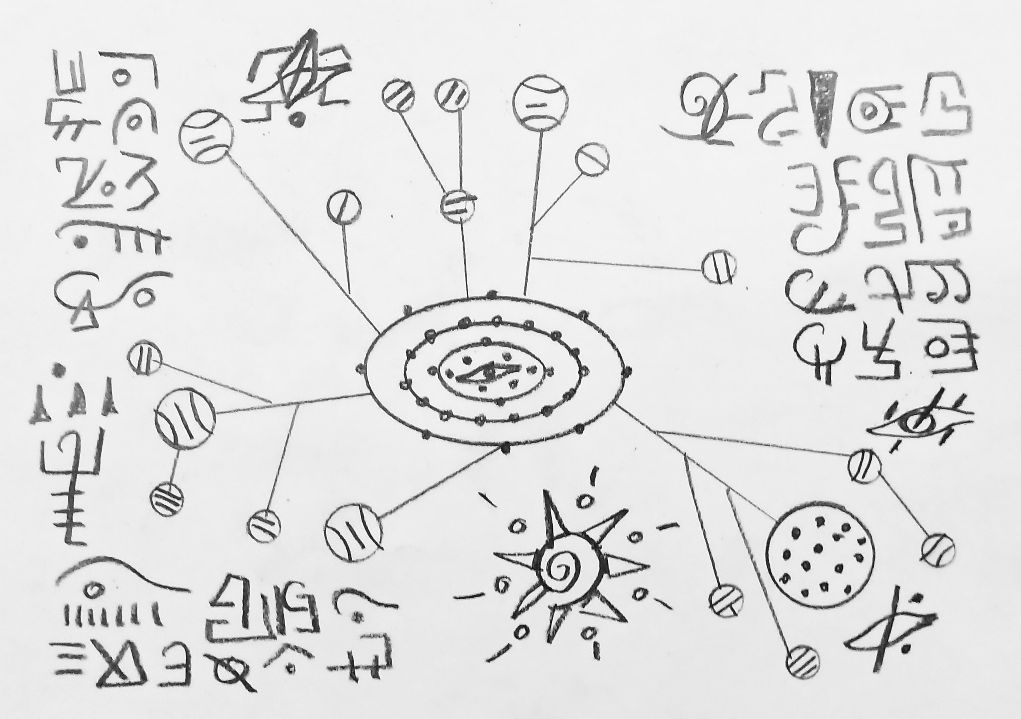 Below you will find pictographs by Gabriel Medina (Big bang quasares andromeda dimencional)