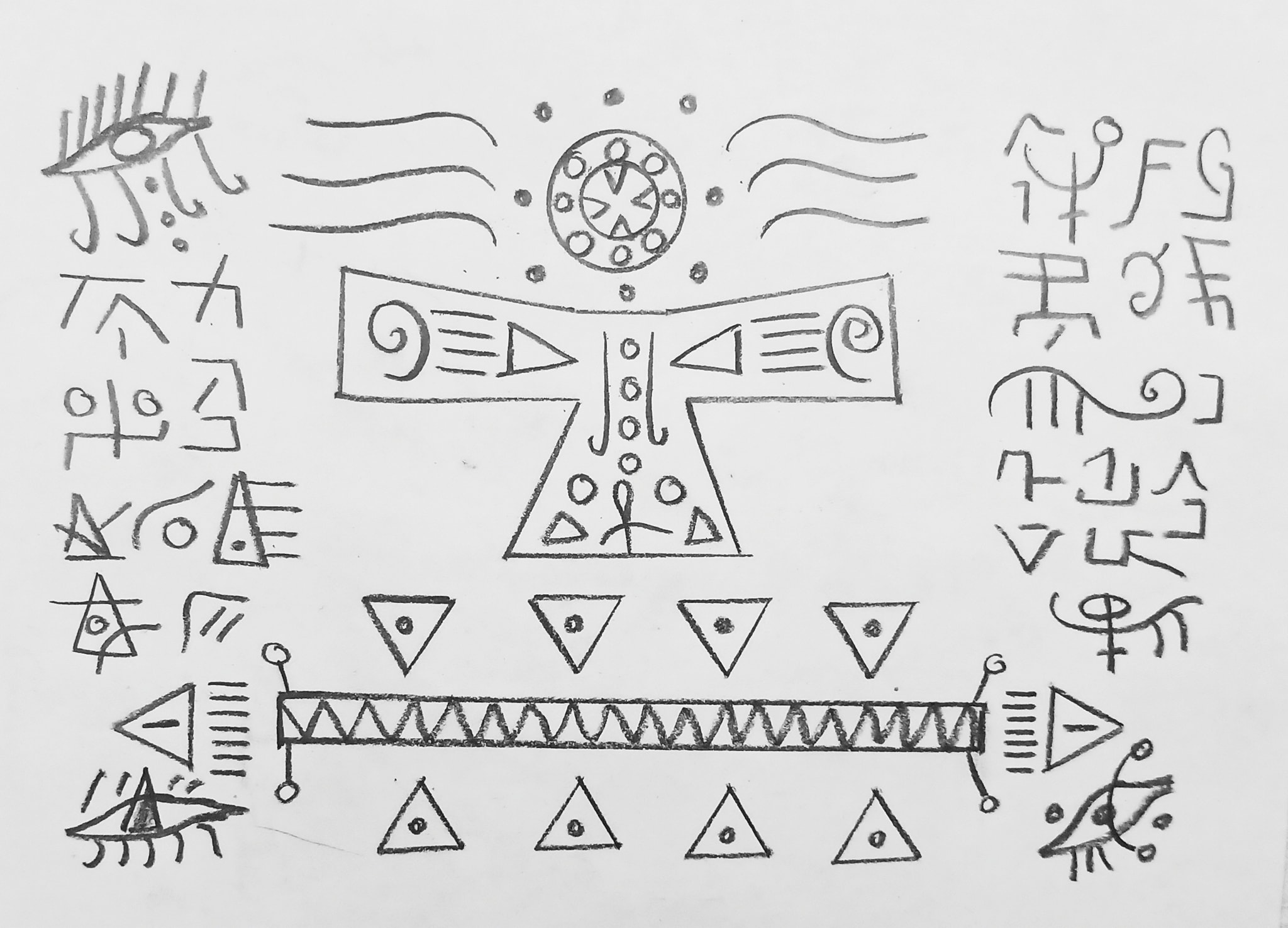 Below you will find pictographs by our cosmic brother Gabriel Medina (Big bang quasares andromeda dimencional)