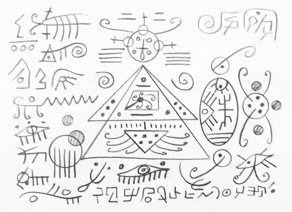 Below you will find pictographs by our cosmic brother Gabriel Medina (Big bang quasares andromeda dimencional)