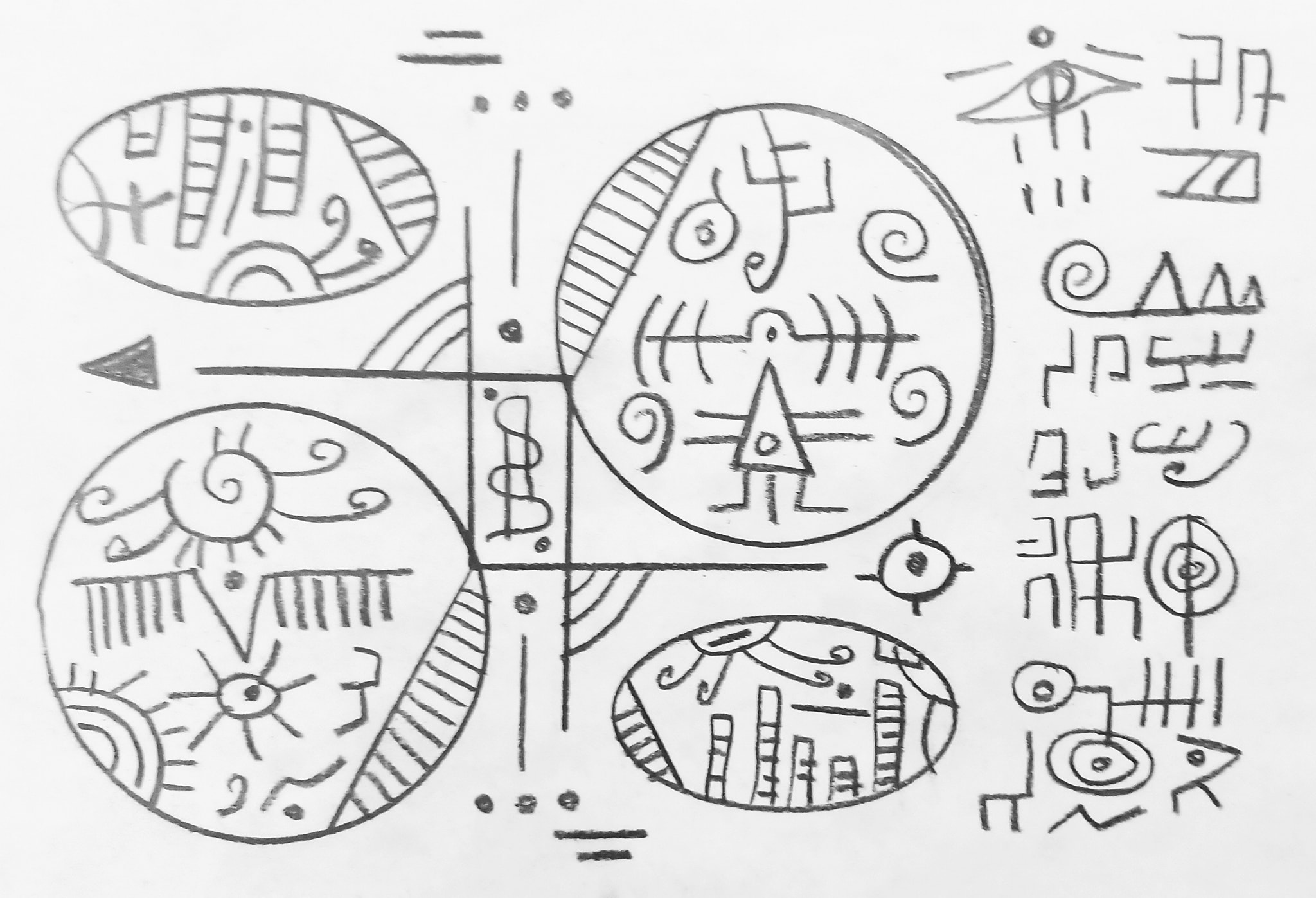 Below you will find pictographs by our cosmic brother Gabriel Medina (Big bang quasares andromeda dimencional)