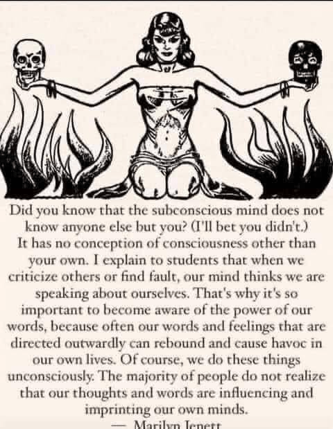 (b) realize that we are either casting spell and cursing ourselves and each other or we are speaking in a way to set ourselves free, it is only in self-awareness that we can choose to do the later; once the trick is known the magician loses his/her magick.