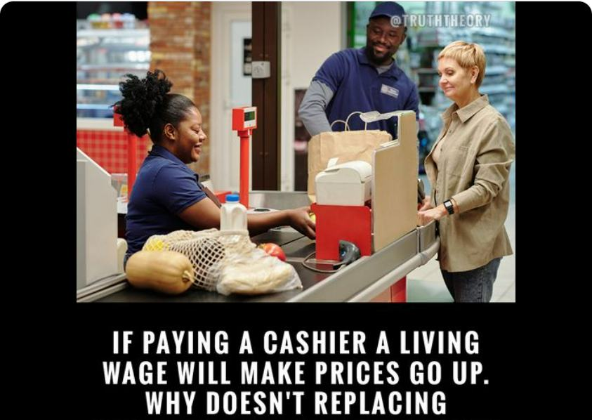 Here is the meme shared, supporting the idea that man is supposed to stand in line and ‘pay” for ‘food” at the grocery store: