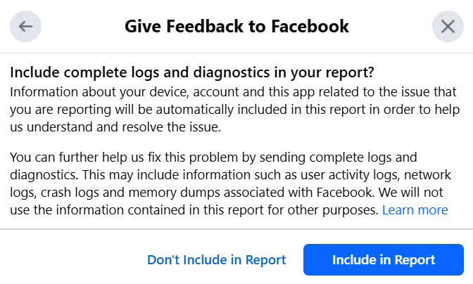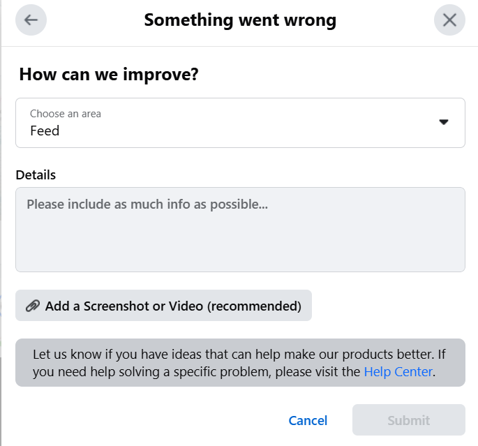 - Report a Problem: Use Facebook’s Help Center to report the issue. You can access this by clicking the downward arrow in the top-right corner of Facebook (on desktop), selecting Help & Support, and then choosing Report a Problem.