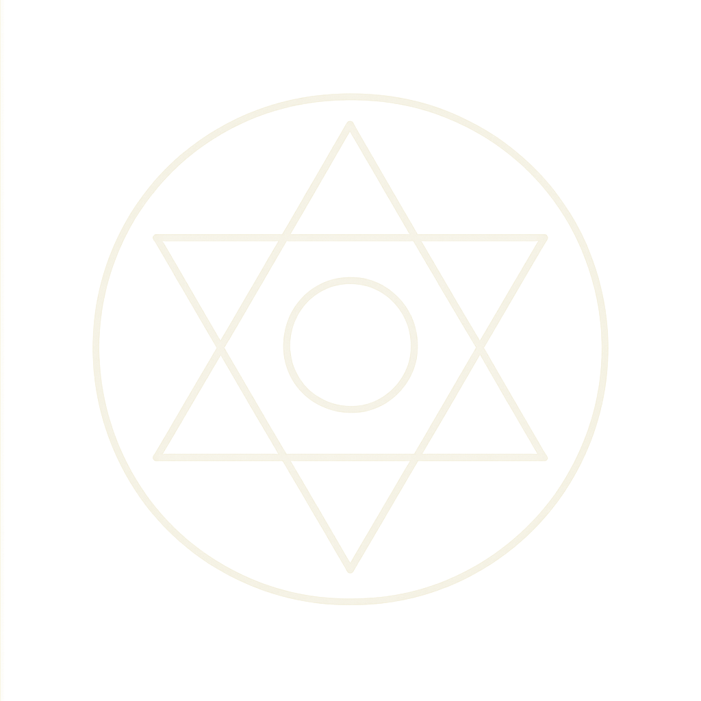 > “Breathe in deeply— > and as you exhale, feel yourself settling gently into the space between worlds. > Imagine before you the sigil—glowing, suspended, alive. > Two interlocking triangles. Above and below. Sky and soil. Masculine and feminine. > > With each breath, let the sigil expand—not outward, but inward, > revealing a sanctuary at its center. > Step into this inner temple. It recognizes you. > > Allow a moment of stillness… > > And now, see yourself seated in the heart of the sigil, > where opposites kiss in quiet equilibrium. > Let one triangle hum with divine light—guidance, inspiration, transcendence. > Let the other root into Earth—wisdom, embodiment, presence. > > Feel them converge within your own heart. You are the bridge. > > Silently repeat: > ‘As above, I remember. As below, I embody. I am the still point where opposites dance.’ > > Rest here. Let the sigil dissolve back into your body, like breath into silence.”