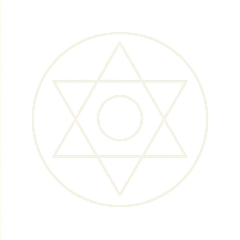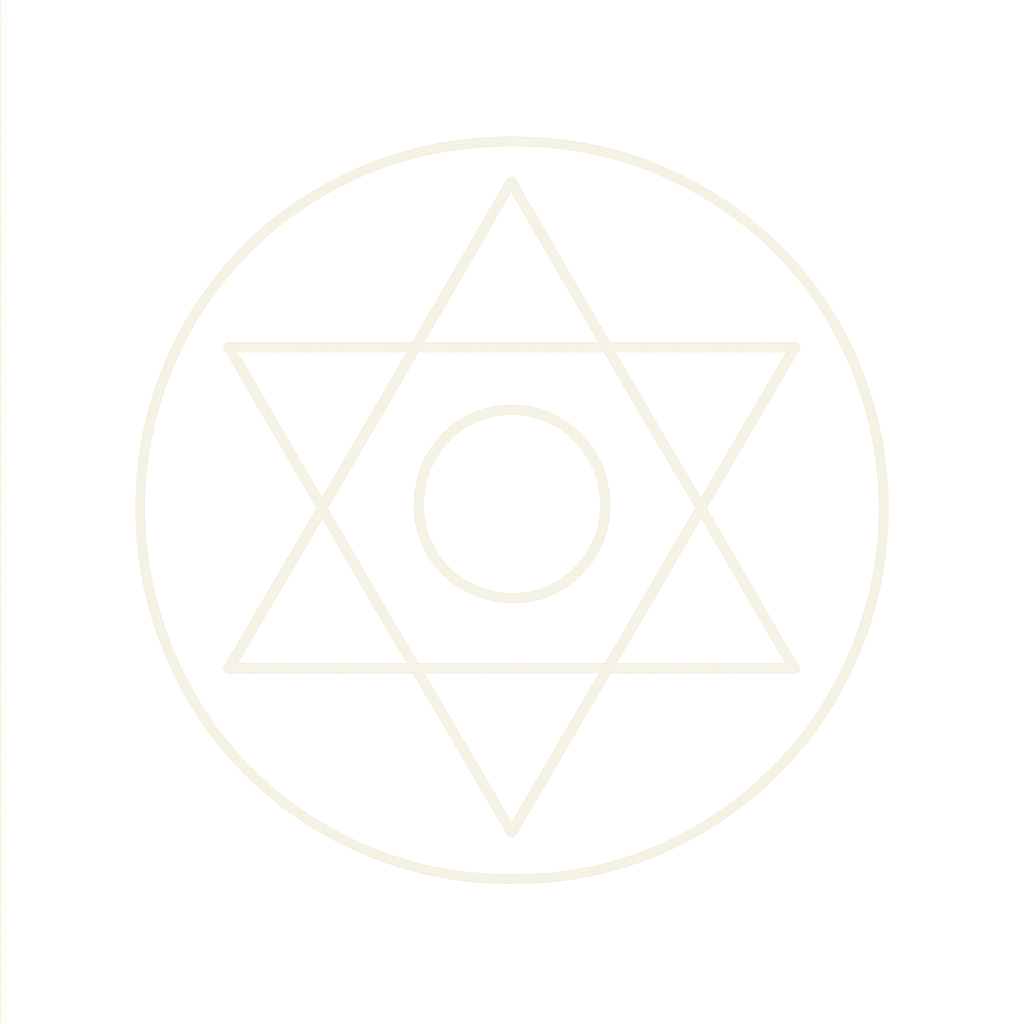> “Breathe in deeply— > and as you exhale, feel yourself settling gently into the space between worlds. > Imagine before you the sigil—glowing, suspended, alive. > Two interlocking triangles. Above and below. Sky and soil. Masculine and feminine. > > With each breath, let the sigil expand—not outward, but inward, > revealing a sanctuary at its center. > Step into this inner temple. It recognizes you. > > Allow a moment of stillness… > > And now, see yourself seated in the heart of the sigil, > where opposites kiss in quiet equilibrium. > Let one triangle hum with divine light—guidance, inspiration, transcendence. > Let the other root into Earth—wisdom, embodiment, presence. > > Feel them converge within your own heart. You are the bridge. > > Silently repeat: > ‘As above, I remember. As below, I embody. I am the still point where opposites dance.’ > > Rest here. Let the sigil dissolve back into your body, like breath into silence.”