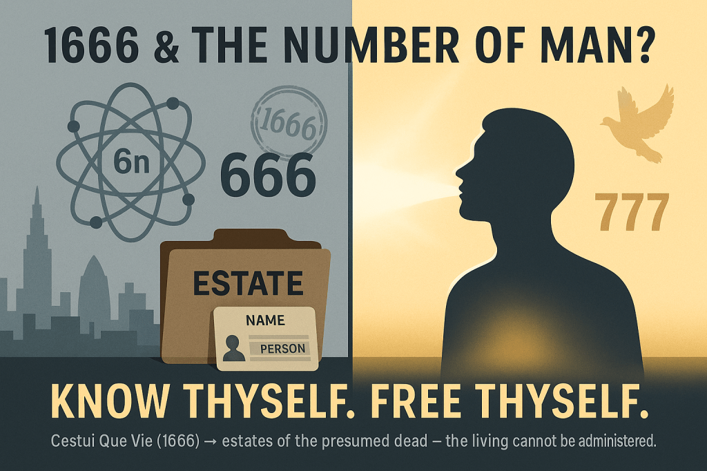 “666 and the Cestui Que Vie Act of 1666. Have you ever wondered if there’s a deeper meaning behind the year 1666, the same year the Cestui Que Vie Act was written into English law, and the mysterious number 666, called in Scripture “the number of a man”? Is it coincidence… or was there a spiritual message hidden in plain sight, a reflection of how humanity drifted from spirit into the world of flesh, from life into a system that treats the living as dead?